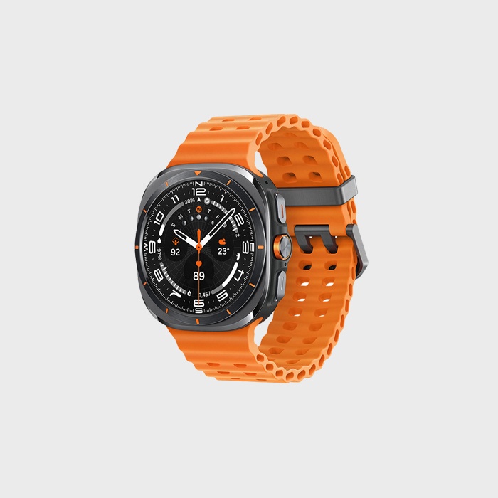 갤럭시 워치 울트라의 디자인은 한눈에 봐도 "어디서 본 듯한 느낌"이 강하게 듭니다. 주황색 액센트를 기본으로 한 색감은 경쟁사 제품을 떠올리게 하죠.